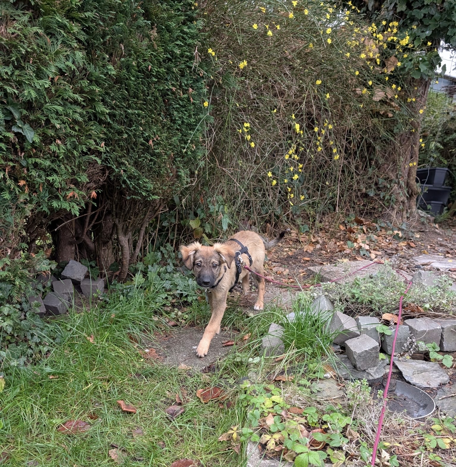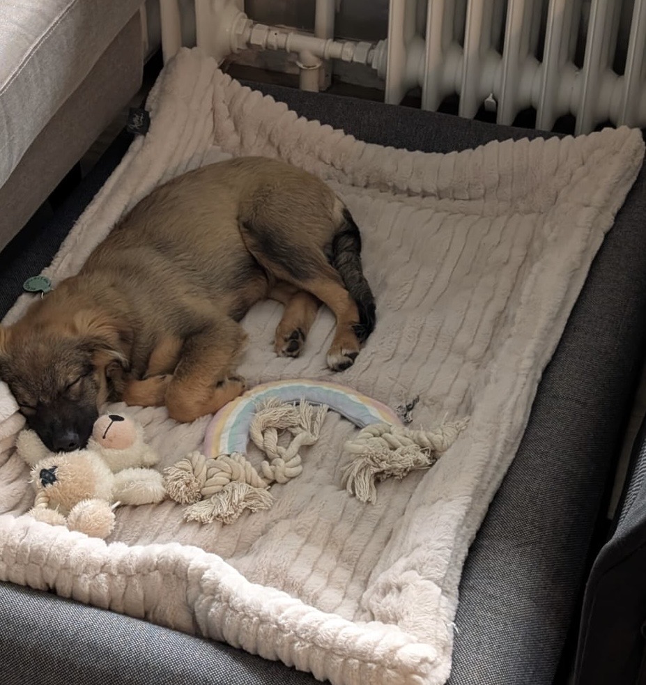 Saba ist welpentypisch verspielt und mag auch die Menschen dort. Ist aber in neuen Situationen etwas schüchtern.