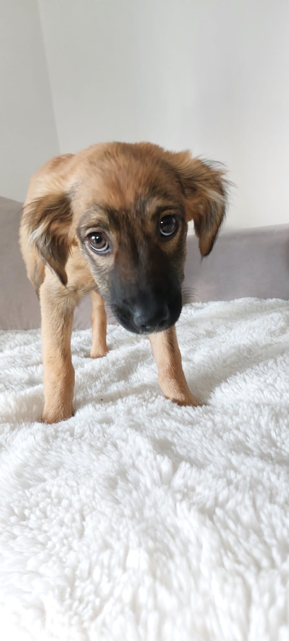 Saba hat dort sofort alle Herzen berührt. Die kleine Hündin ist Menschen gegenüber noch etwas schüchtern, doch man spürt, wie sehr sie sich Nähe wünscht und langsam Vertrauen fasst.