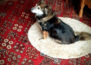 Anfangs lag sie nur auf dem blanken Boden . Mittlerweile hat sie die weichen Bettchen kennen und lieben gelernt.