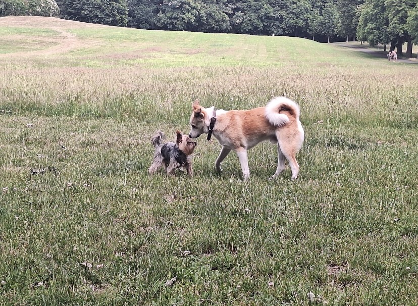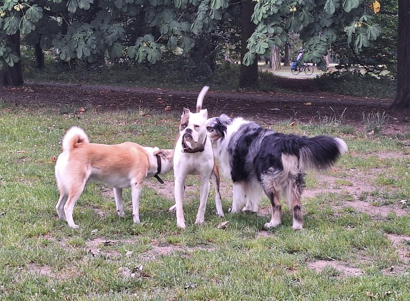 Bei anderen Hunden entscheidet die Sympathie. Er hat auch gute Hundekumpels mit denen er gerne rumtobt.