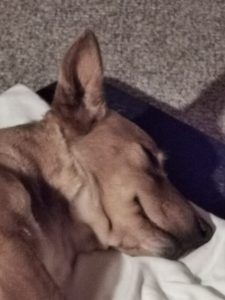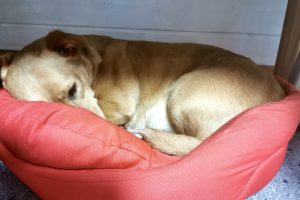 Sie lernt schnell und kuschel gerne nur wenn sie etwas nicht will – zB. bei Regen raus gehen- verwandelt sie sich in einen 17kg schweren, schlafen Sack, den man zum Geschirr anziehen von einer auf die andere Seite rollen muss.
