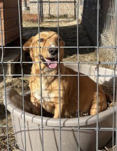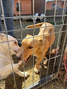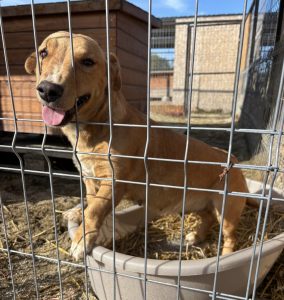 Wanda freut sich im Tierheim sehr über Menschenbesuch. Aber auch mit den anderen Hunden in ihrem Zwinger kommt sie sehr gut aus.