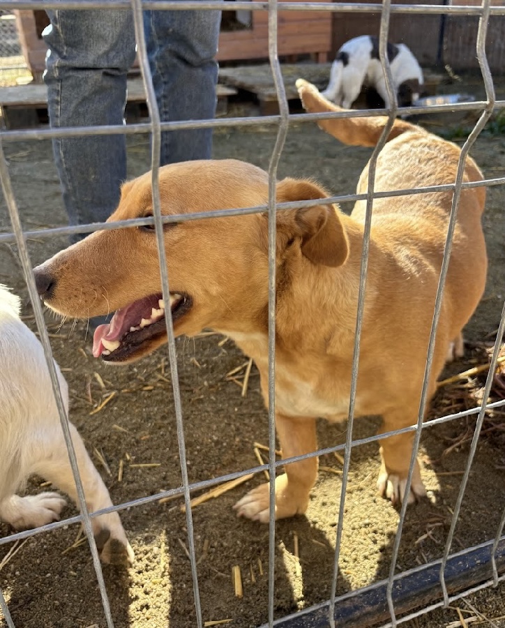 Wanda freut sich im Tierheim sehr über Menschenbesuch. Aber auch mit den anderen Hunden in ihrem Zwinger kommt sie sehr gut aus.