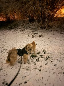 Luiza hat Winnie bei starkem Frost auf einem Feld gefunden. Winnie war froh ins warme Auto einsteigen zu können.