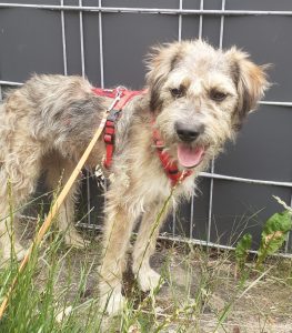 Zado fühlt sich auf seiner Pflegestelle sehr wohl und erkundet gerne Neues. Er läuft schon lieb an der Leine und mag die Hunde und Katzen dort sehr gern.