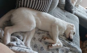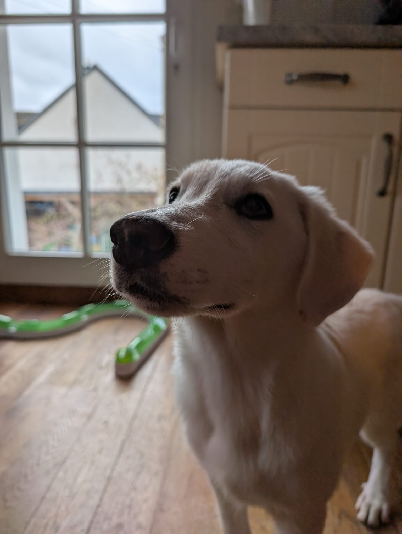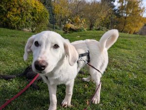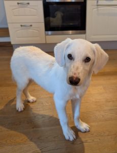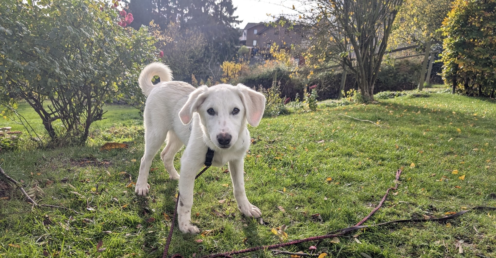 Er ist ein sehr aufgeschlossener Rüde. Er ist Junghund typisch sehr verspielt. Er kann sich aber auch schon gut entspannen. Er läuft bereits gut an der Leine, muss aber natürlich noch das Hunde “Einmaleins” lernen.