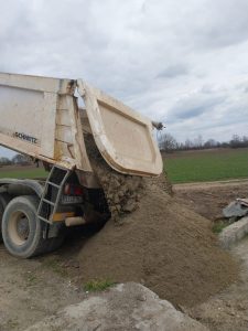 Gestern kam die erste Lieferung Sand. Die 2 anderen folgen in der nächsten Woche.