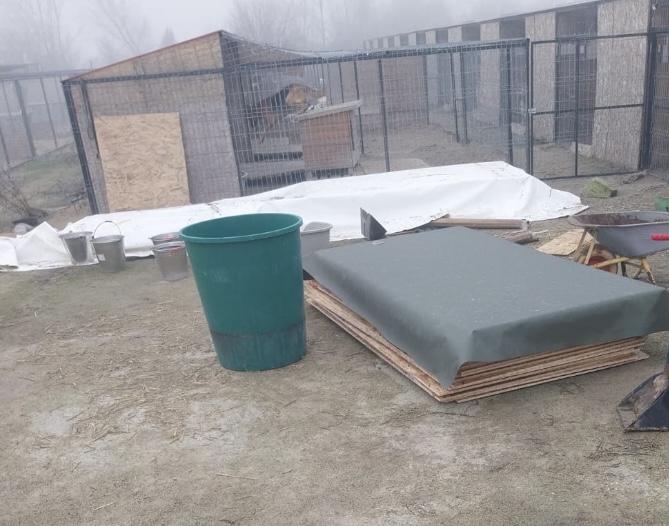 Es steht so einiges an. Es ist geplant an 2 Tagen Sand in die Zwinger zu bringen. Stellen wo sich schon OSB befindet, sollen geschlossen werden, damit auch im Winter der Schnee oder Regen nicht an noch offenen Stellen in diese geschützten Bereiche eindringen kann.
