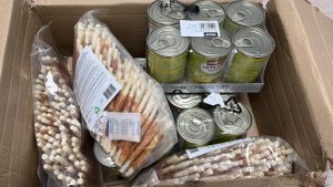 Ein EinkaufswGen voller Spenden von der Spendenbox vom Futterhaus.