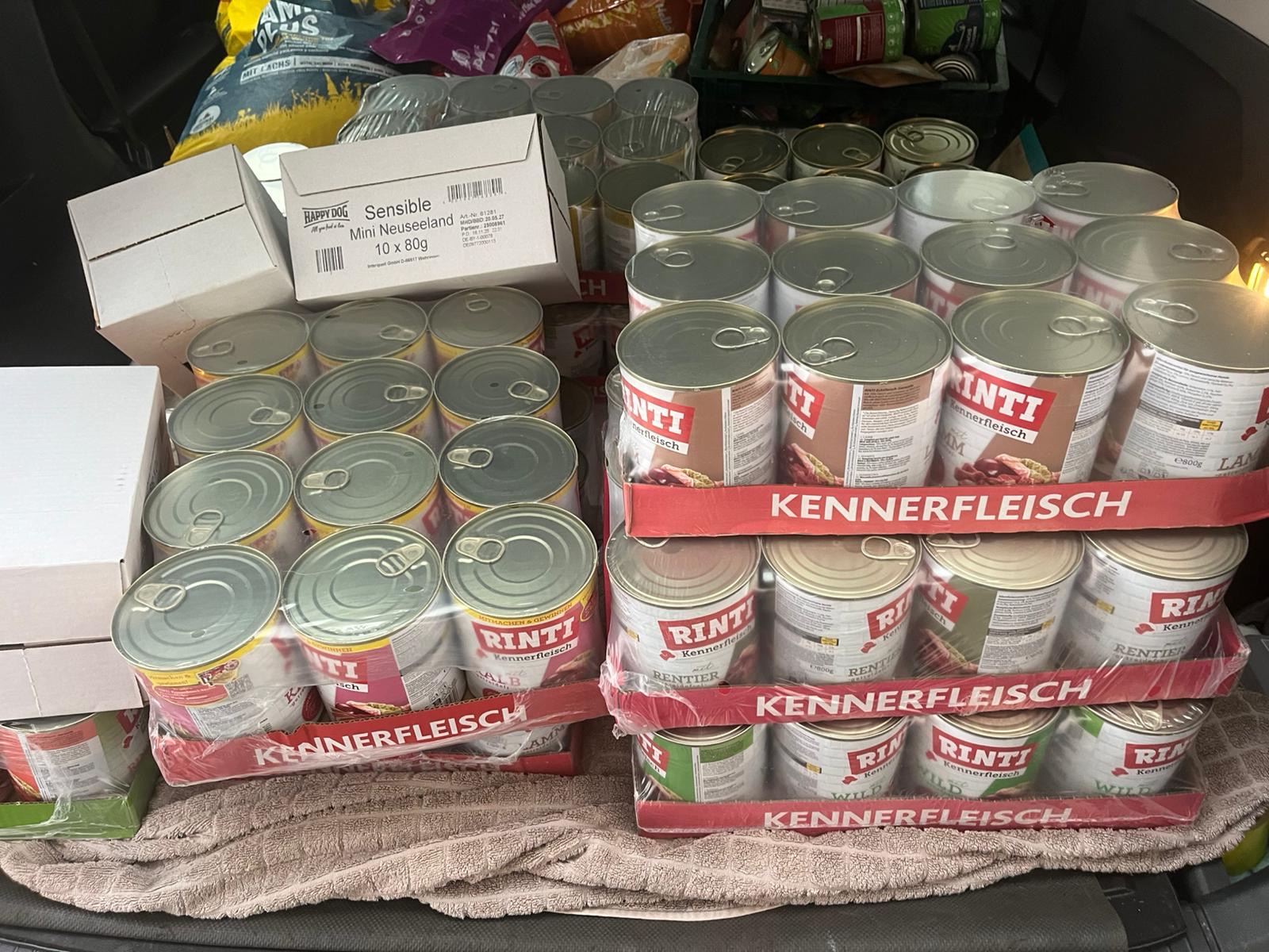 Anbei einige Bilder von einem Teil des eingekauften qualitativ guten Futters für unsere Hunde im Tierheim. Vielen Dank! Futterspenden sind eine wichtige Hilfe für uns.