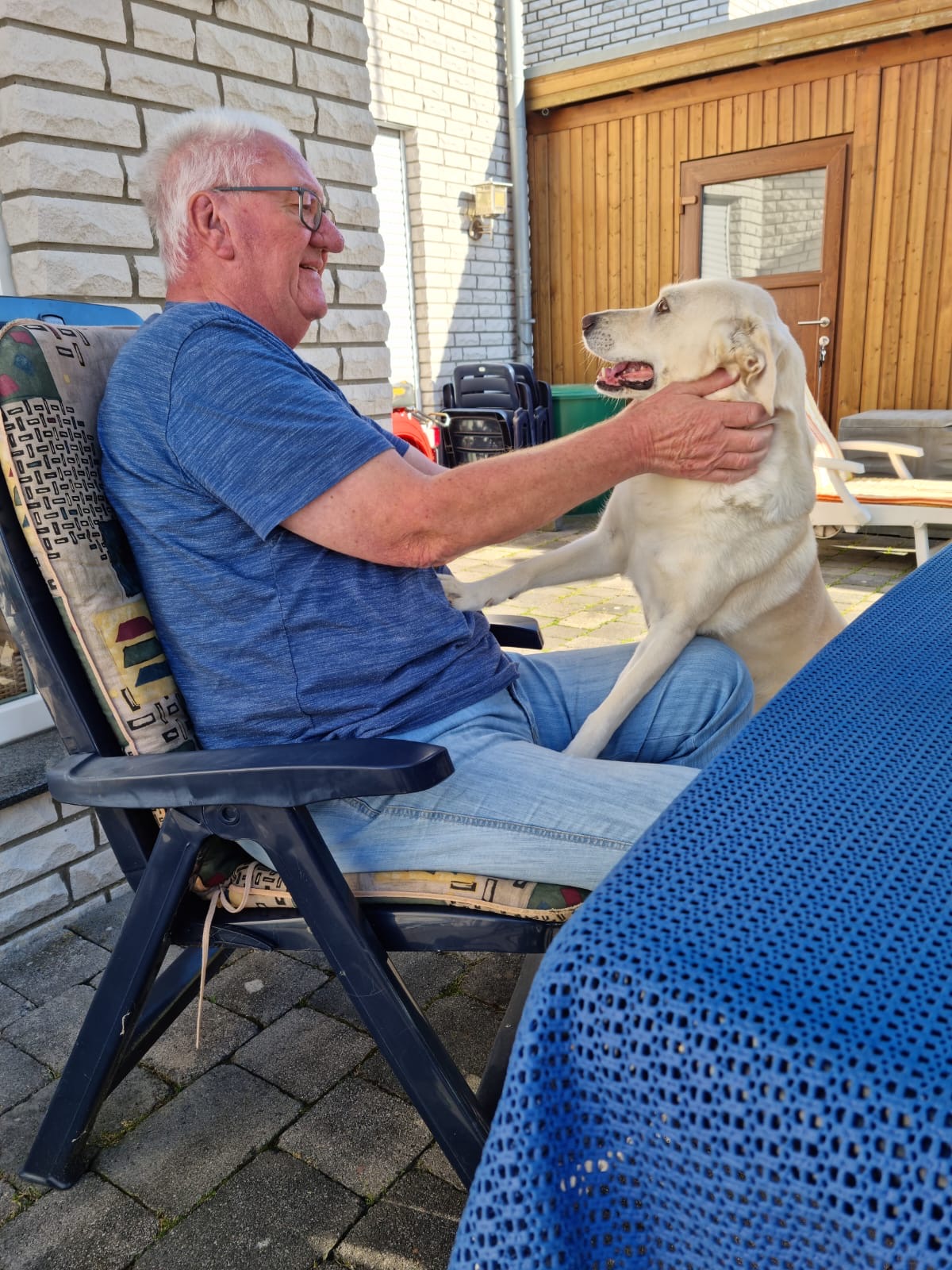 „Die Freude, einander zu treffen, war auf beiden Seiten stets riesig! Zuletzt haben Buffy und Hunde-Opa -wie Karl-Heinz sich selbst nannte- am 01. Februar zusammen mit der Familie Weihnachten nachgefeiert, da das eigentliche Weihnachtsfest aufgrund eines längeren Krankenhausaufenthalts von Karl-Heinz leider ausfallen musste. Am 06. Februar ist Karl-Heinz dann plötzlich und völlig unerwartet verstorben.“