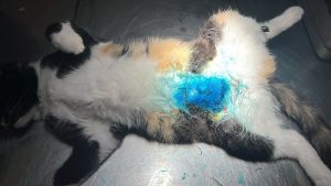 Der Katze geht es wieder gut, nach der Amputation des Beines. Sie ist von einem Auto mitgeschliffen worden.