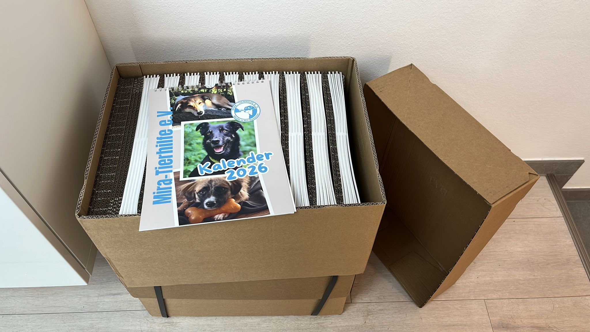 Wir losen dann die Bilder für den Mira-Tierhilfe Kalender 2026 aus. Mit dem Kalender zeigen wir den Charakter, Charme und die Lebensfreude von Hunden aus dem Tierschutz. Und das Beste ist, von dem Erlös profitieren Mira-Hunde, die noch kein Zuhause gefunden haben.