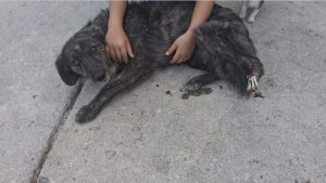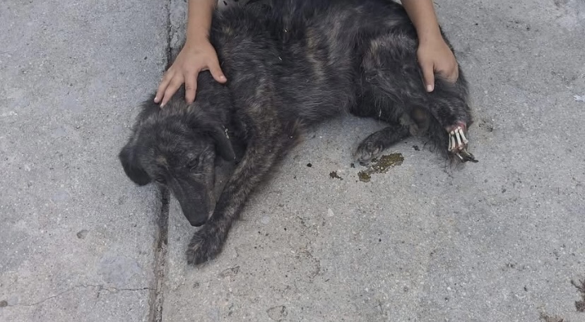 Luiza fand diesen verletzten völlig dehydrierten Hund. Seine Wunden voller Maden. Er ist jetzt in der Klinik und kämpft um sein Leben.