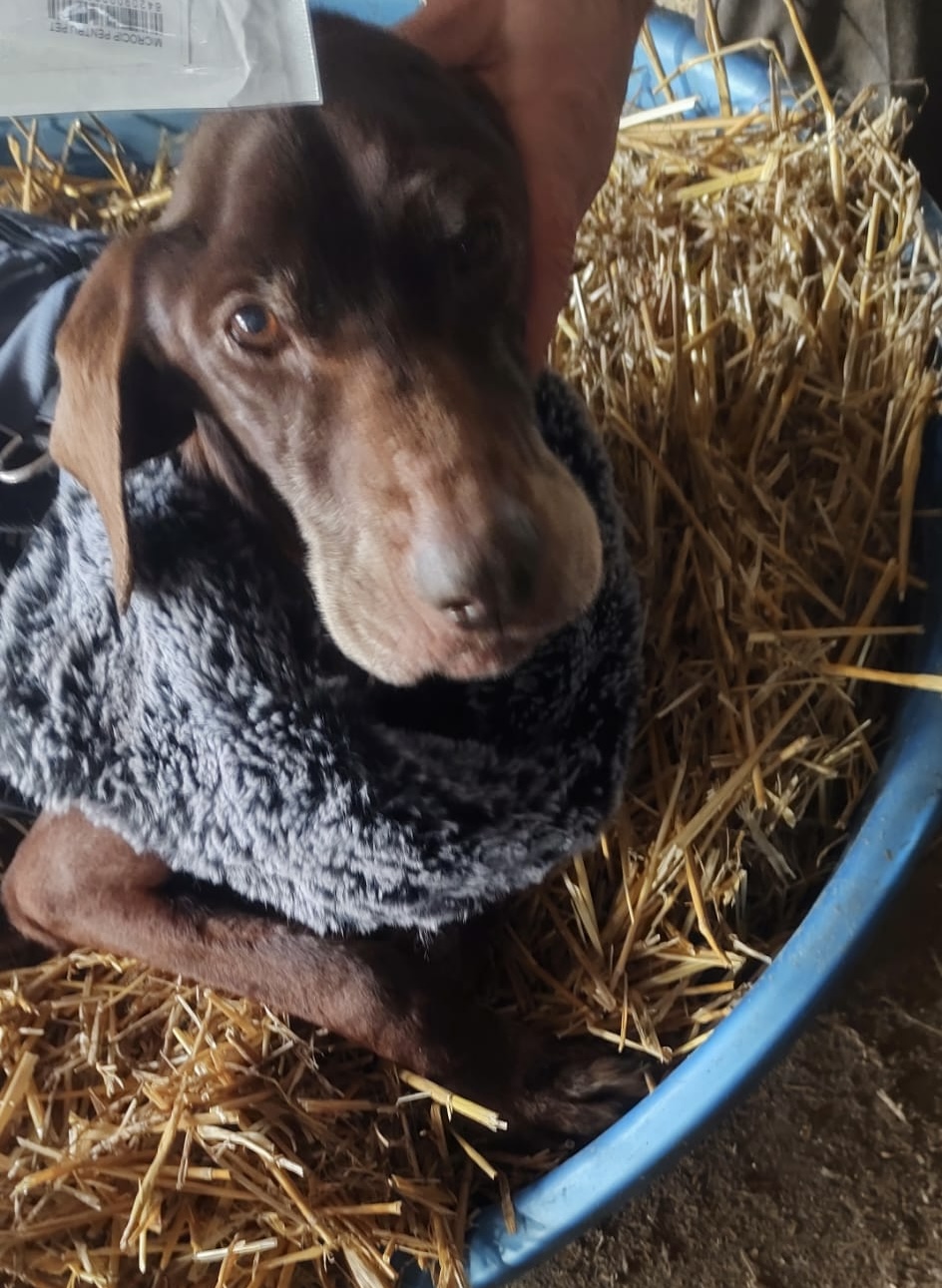 Frumosa und ihre 2 Welpen sind bei uns eigezogen. Sie haben sehr gefroren. Für einen Welpen kam die Hilfe leider zu spät. Er verstarb kurz darauf 🥲.