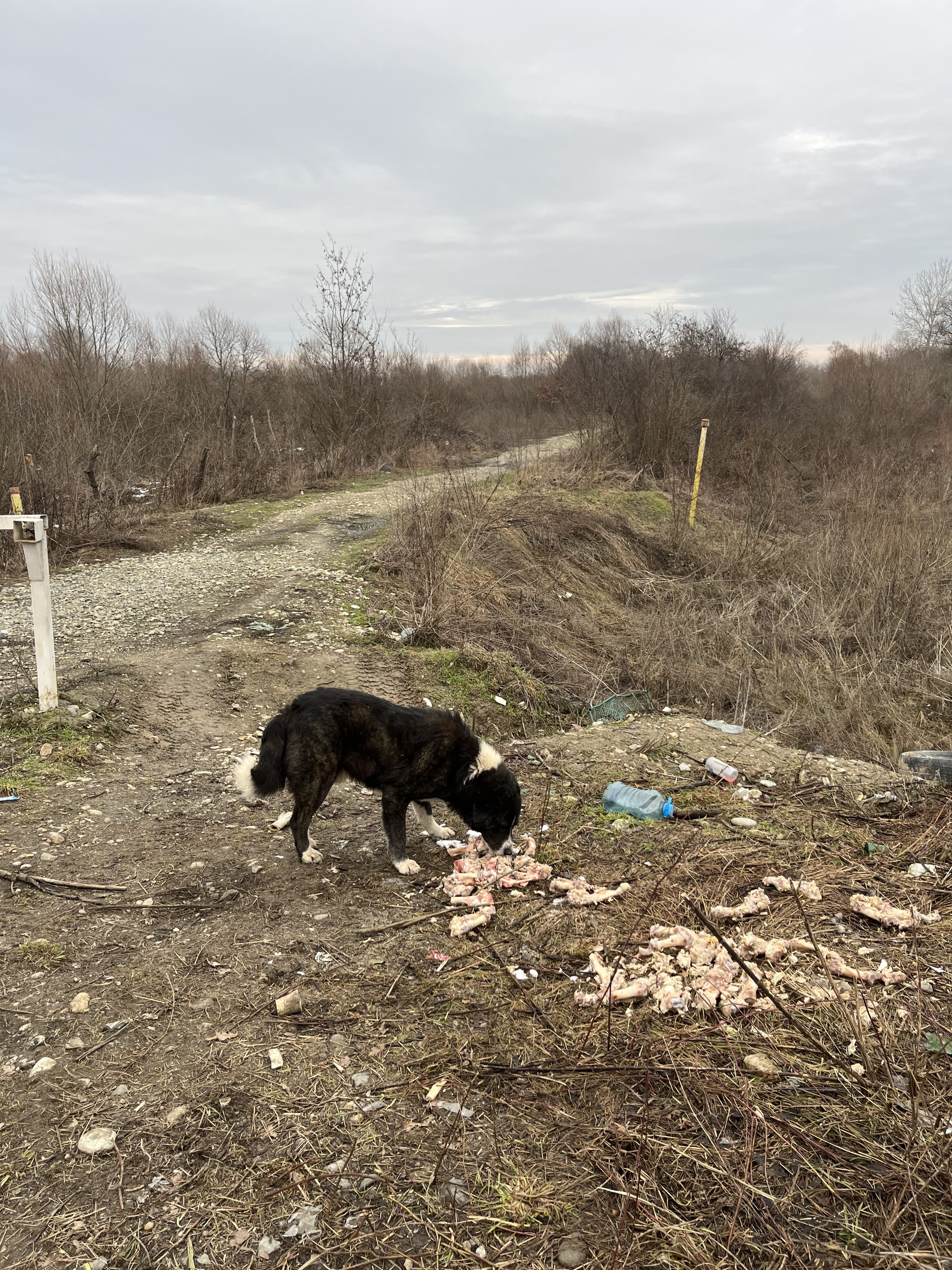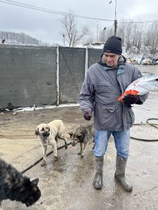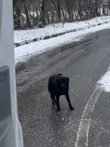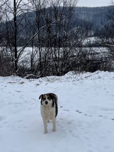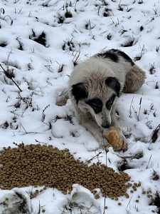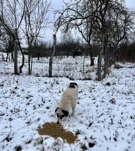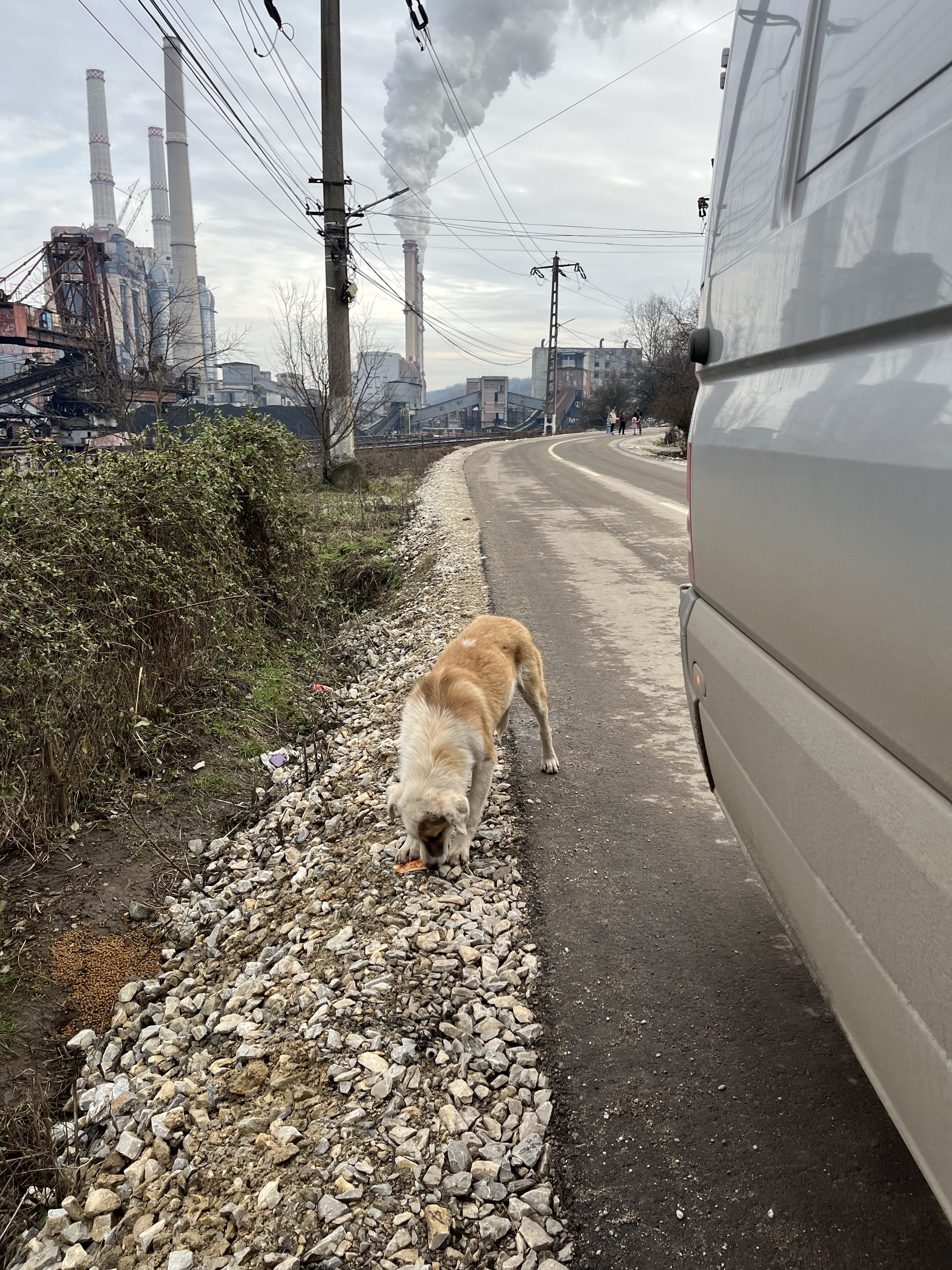 Die Wettervorhersage war sehr winterlich und wir machen uns große Sorgen um die Straßenhunde, da es für sie sehr schwierig ist an Nahrung zu kommen. Dank vieler lieber Spender war unser Sprinter mit viel Futter und Leckereien voll und wir kamen ohne größere Probleme nach Rumänien. Unser erster Futterort ist ein Parkplatz an der Donau, wo wir neben vielen Hunden immer unser gestromtes Geschwisterpaar seit Jahren füttern. Leider war an diesem Tag kein einziger Hund dort zu sehen und auch keine Spuren von Hunden zu sehen. Dann macht man sich viele Gedanken, da man ja nicht weiß was passiert ist. Wir hofften, dass sie einen guten Platz in einem nahen Schuppen oder ähnliches gefunden hatten und es ihnen gut ging. So fuhren wir weiter in die Berge- die Karpaten sind sehr steil und kurvenreich und es sind viele Parkplätze an der Landstraße, an dem wir immer viele Straßenhunde antreffen. Die Straßenhunde, die wir antrafen freuten sich sehr über unser Futter, waren aber zum Glück in einem recht guten Zustand. Nach so einem harten Winter hatten wir mit mehr sehr dünnen Hunden gerechnet. Wir ließen ihnen viel Futter dort und fuhren weiter in Richtung Targu Jiu.