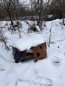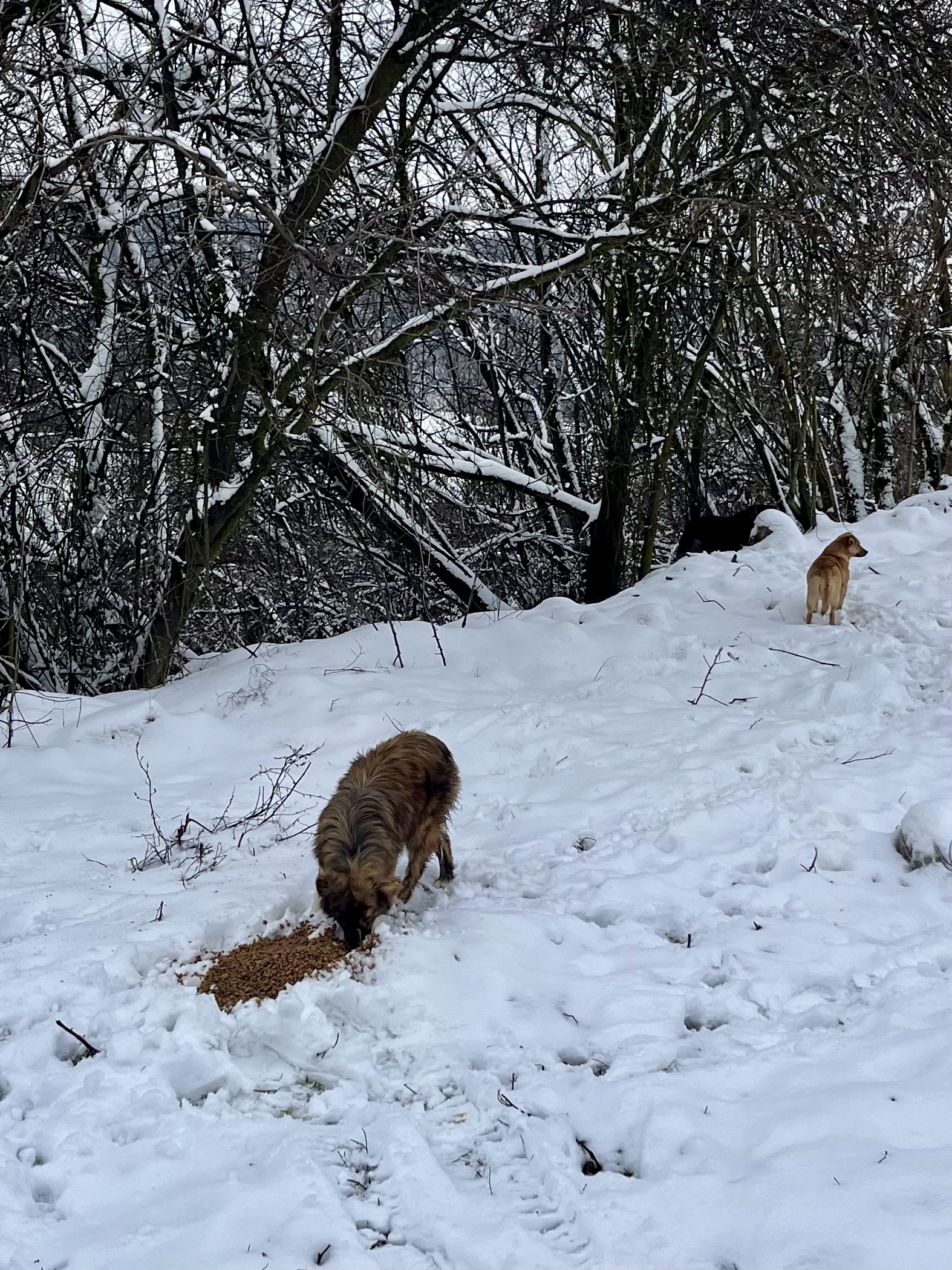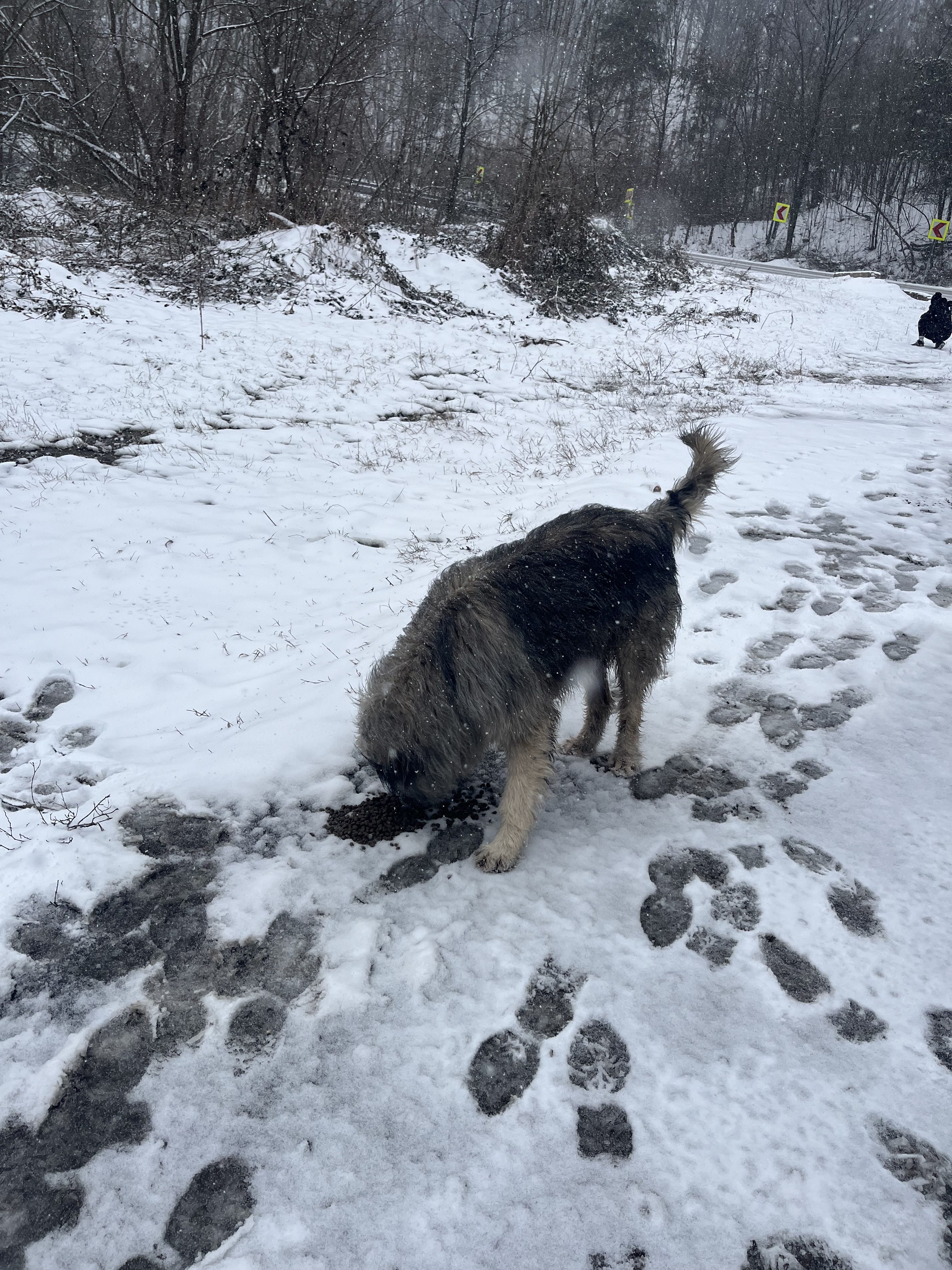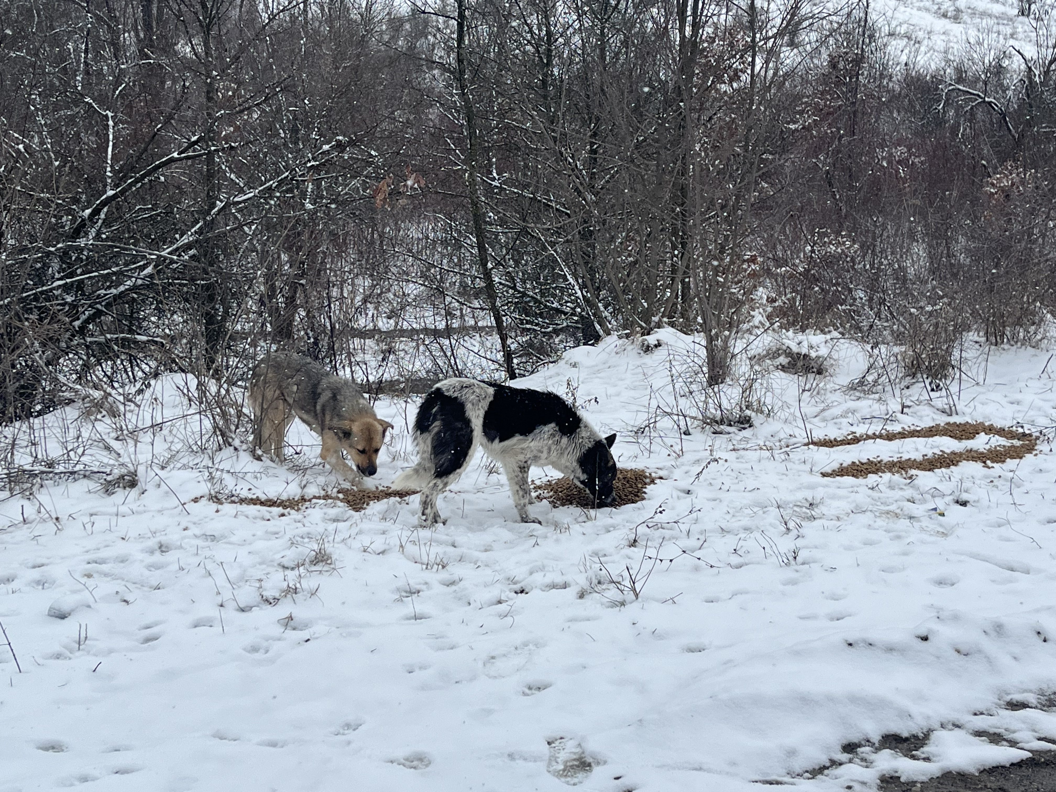 Die Wettervorhersage war sehr winterlich und wir machen uns große Sorgen um die Straßenhunde, da es für sie sehr schwierig ist an Nahrung zu kommen. Dank vieler lieber Spender war unser Sprinter mit viel Futter und Leckereien voll und wir kamen ohne größere Probleme nach Rumänien. Unser erster Futterort ist ein Parkplatz an der Donau, wo wir neben vielen Hunden immer unser gestromtes Geschwisterpaar seit Jahren füttern. Leider war an diesem Tag kein einziger Hund dort zu sehen und auch keine Spuren von Hunden zu sehen. Dann macht man sich viele Gedanken, da man ja nicht weiß was passiert ist. Wir hofften, dass sie einen guten Platz in einem nahen Schuppen oder ähnliches gefunden hatten und es ihnen gut ging. So fuhren wir weiter in die Berge- die Karpaten sind sehr steil und kurvenreich und es sind viele Parkplätze an der Landstraße, an dem wir immer viele Straßenhunde antreffen. Die Straßenhunde, die wir antrafen freuten sich sehr über unser Futter, waren aber zum Glück in einem recht guten Zustand. Nach so einem harten Winter hatten wir mit mehr sehr dünnen Hunden gerechnet. Wir ließen ihnen viel Futter dort und fuhren weiter in Richtung Targu Jiu.