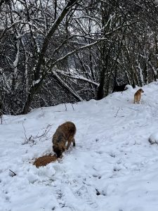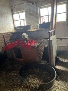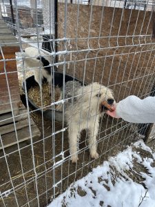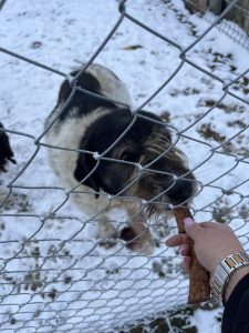 Zum Glück wurde es die nächste Tage etwas wärmer und der Schnee schmolz. So war es für uns etwas angenehmer, aber die mitgebrachten Wärmesohlen für die Stiefel, die Skihosen und die Taschenwärmer brauchten wir trotzdem. Unser Ovidio versorgt unsere Tiere bei jedem Wetter und dies ist im Winter besonders viel Arbeit. Die Wassereimer frieren im Nuh wieder zu und auch muss er ständig Stroh in die Hütten nachlegen, damit unsere Fellnasen es gemütlich in ihren isolierten Hütten haben.