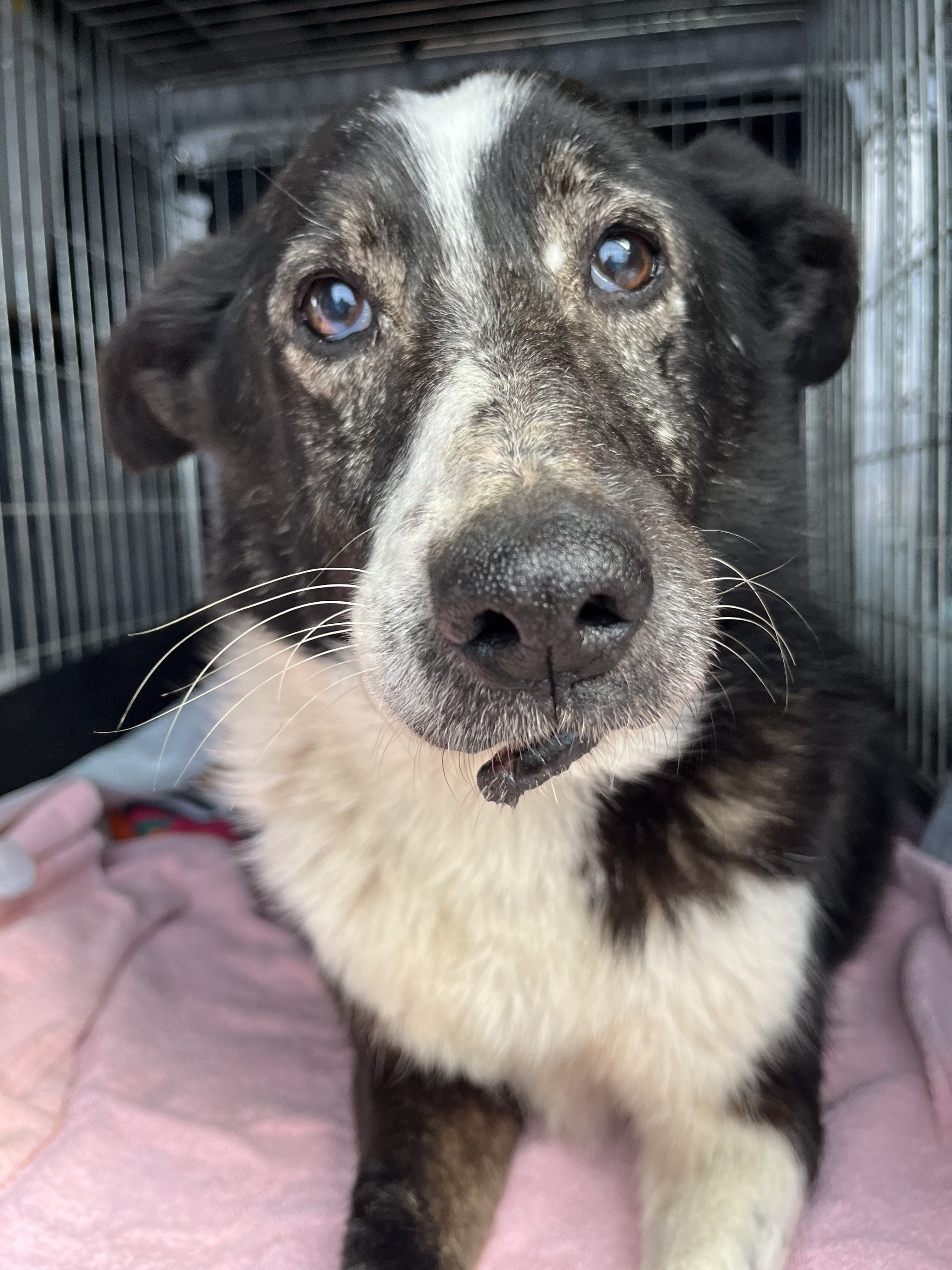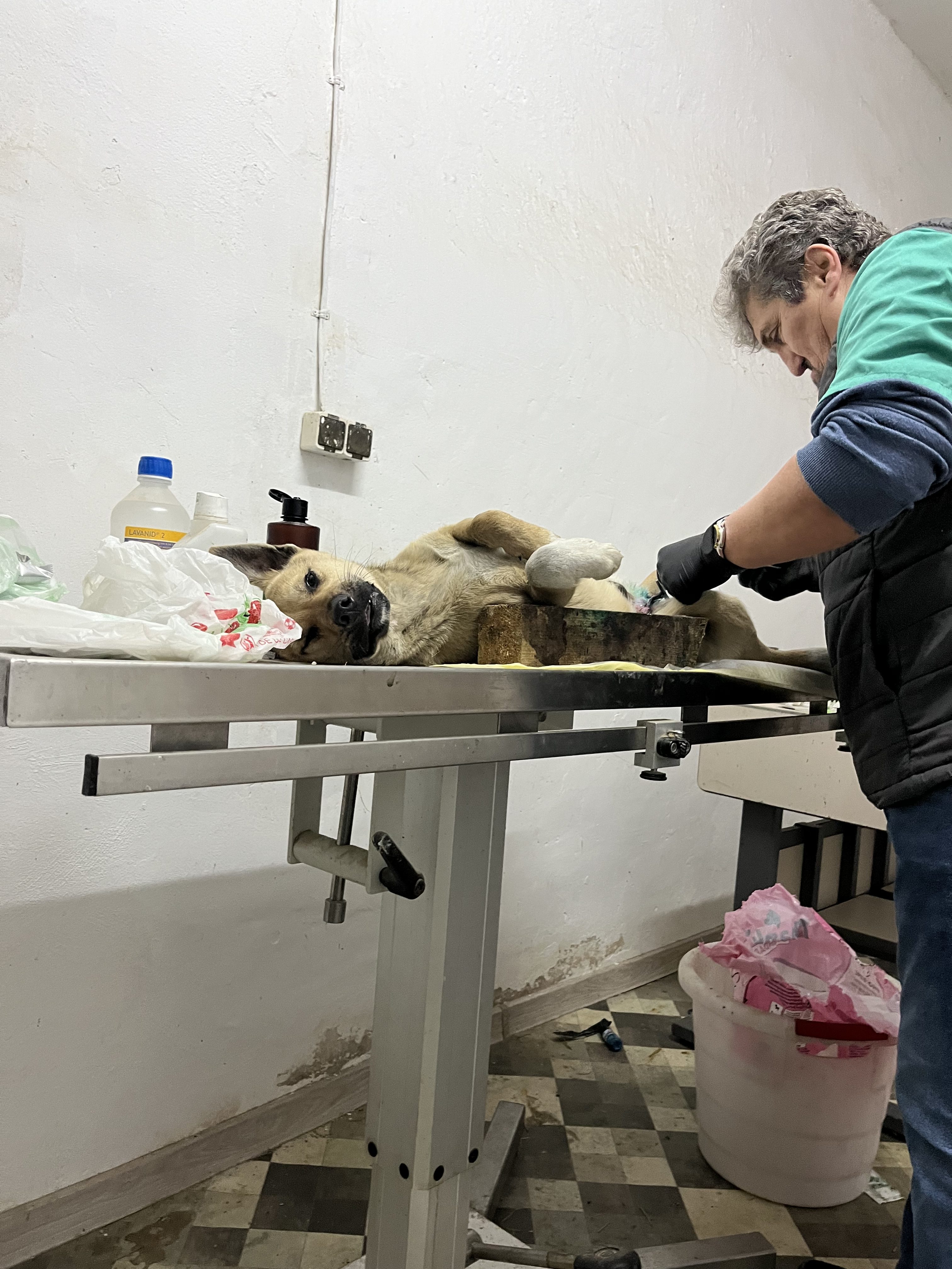 Am nächsten Tag fuhren wir mit dem verletzten Rüden zum Tierarzt, der unsere Einschätzung bestätigte und leider nur eine Amputation für sinnvoll hielt. Die Knochen waren so stark gebrochen und gesplittert, dass keine andere Behandlung möglich ist. Er war sehr lieb bei der Untersuchung und erhielt dann den Namen Yuuma. Der Name kommt aus Japan und bedeutet Sanftmut und Ruhe.