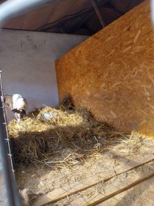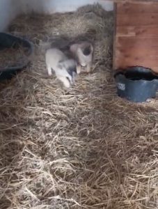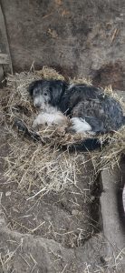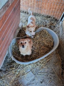 Die Nächte sind schon sehr kühl. Für heute Nacht sind nur 4 Grad angesagt. Deshalb wollen wir starten, dass die Hunde Stroh in die Hütten und in die Halle bekommen. Anfangen werden wir mit den Welpen, kleinen Hunden und den Senioren.