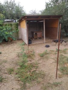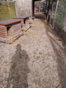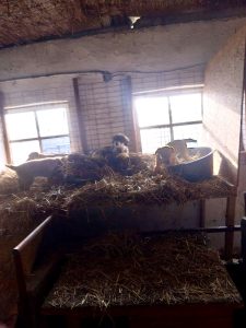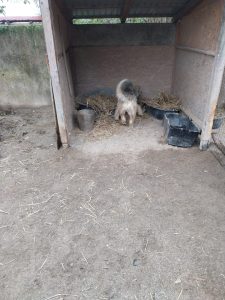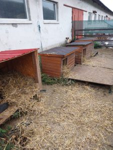 Die Nächte sind schon sehr kühl. Für heute Nacht sind nur 4 Grad angesagt. Deshalb wollen wir starten, dass die Hunde Stroh in die Hütten und in die Halle bekommen. Anfangen werden wir mit den Welpen, kleinen Hunden und den Senioren.