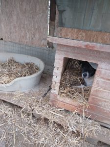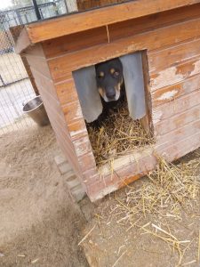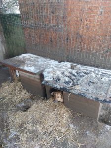 Neuzugänge wie z. B . diese Hündin haben grosse Probleme mit dem kalten Wetter. Aber auch unsere vielen Welpen und Senioren brauch dieses dringend.