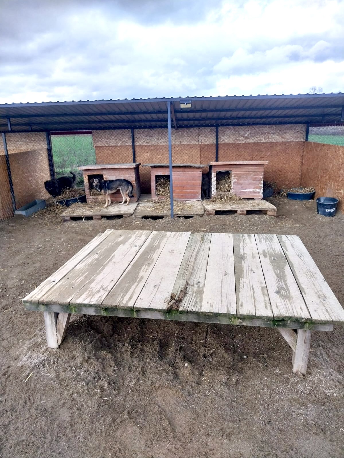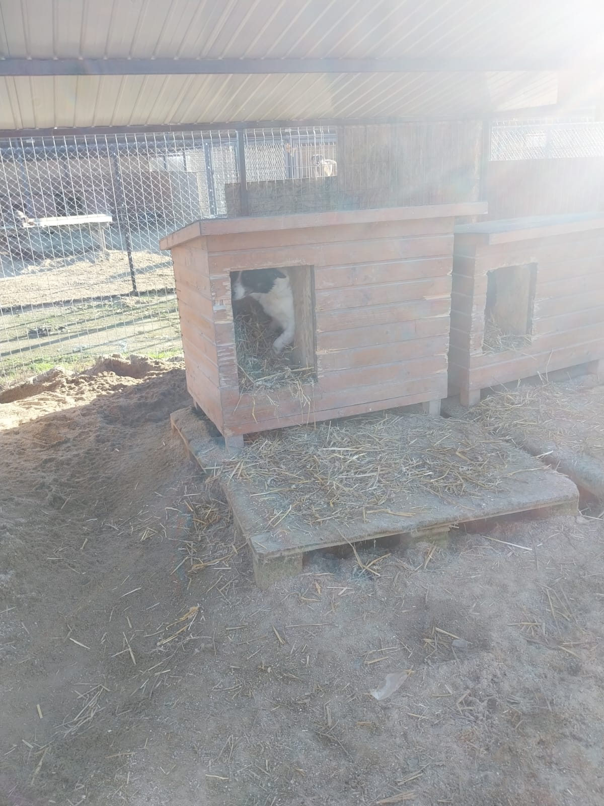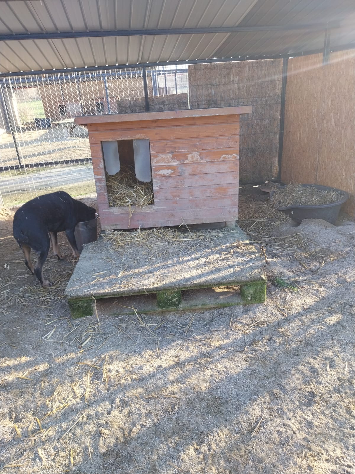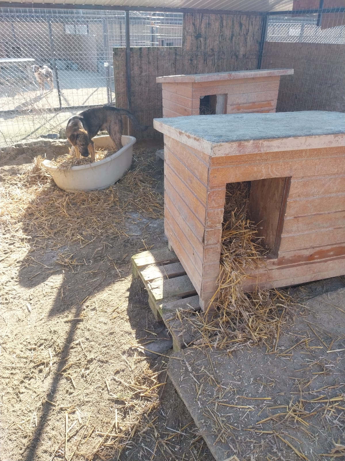 Wir können nur versuchen die Hunde so gut es geht im Tierheim zu unterstützen. Dazu gehört, den Hunden regelmässig Stroh nachzulegen. Hier Bilder von einen Teil der Zwinger.