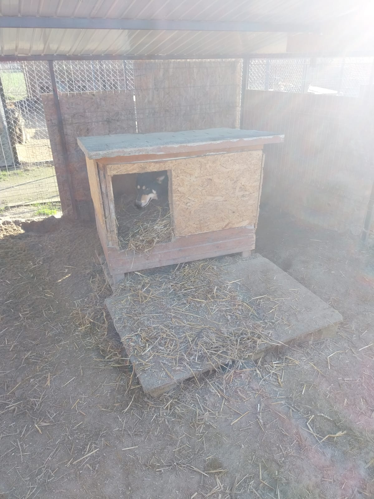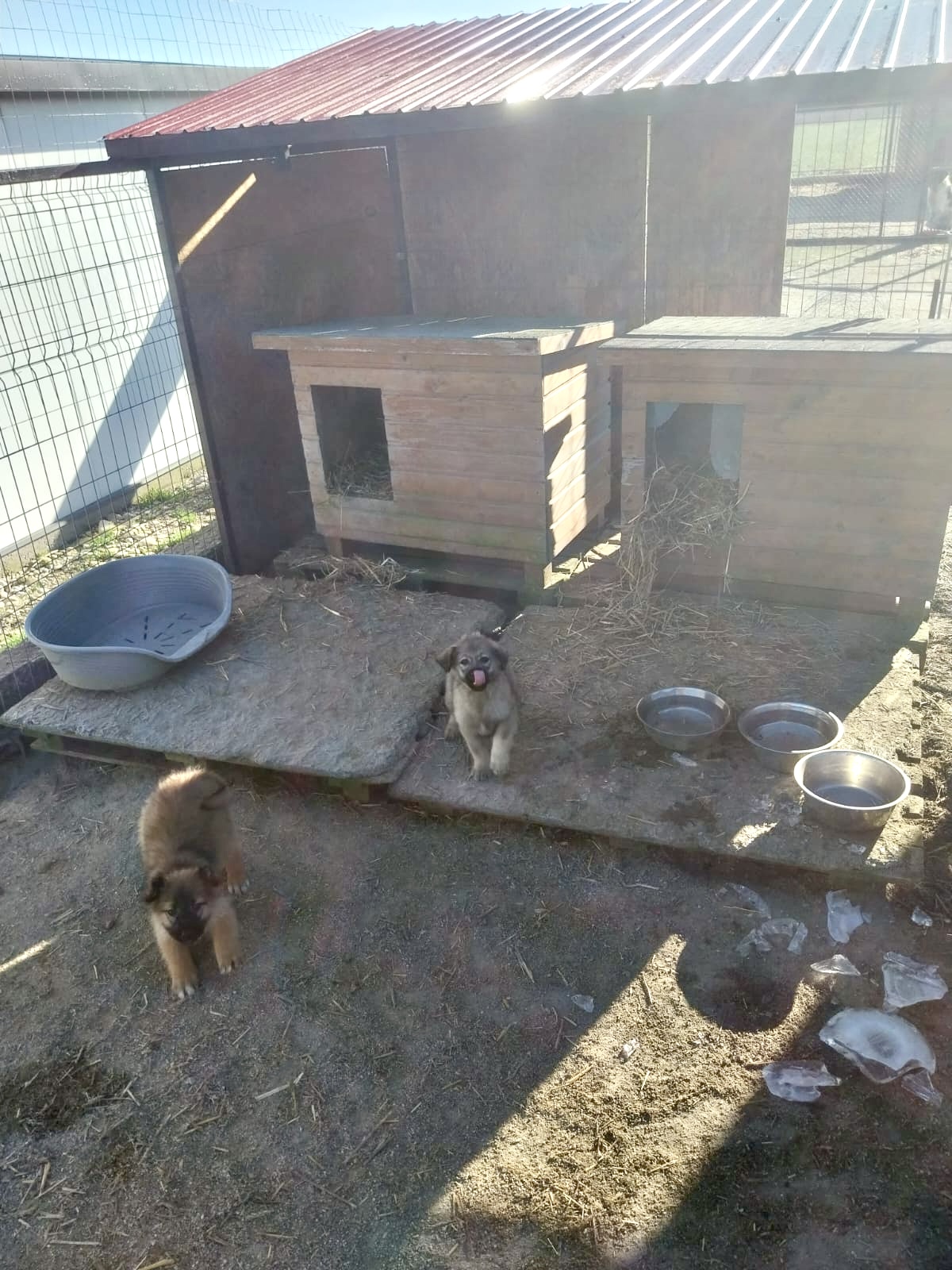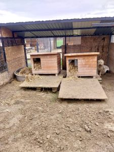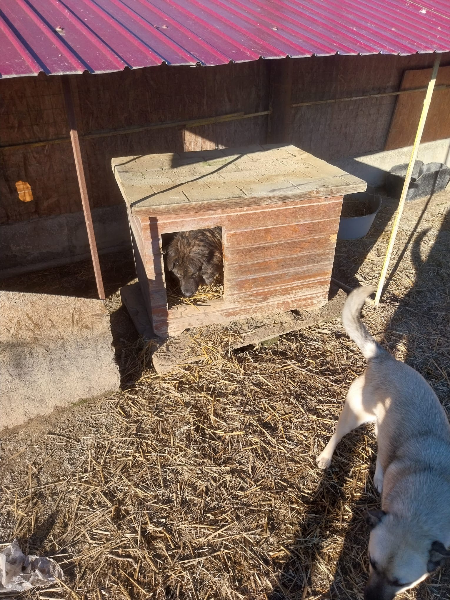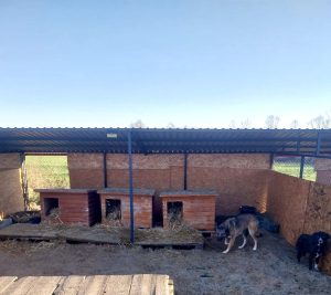 Nachtrag, die Hunde an der Kette gehören nicht uns, sie leben aber sehr dicht am Tierheim und somit versorgen wir sie mit einer guten Hütte, Stroh ect mit.