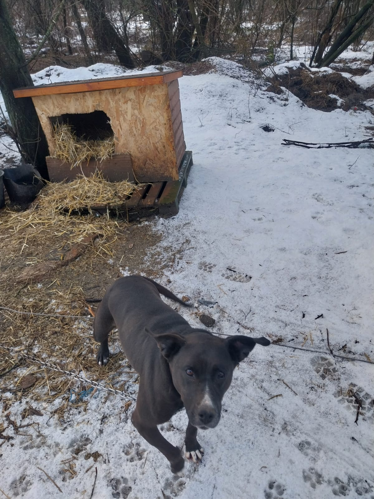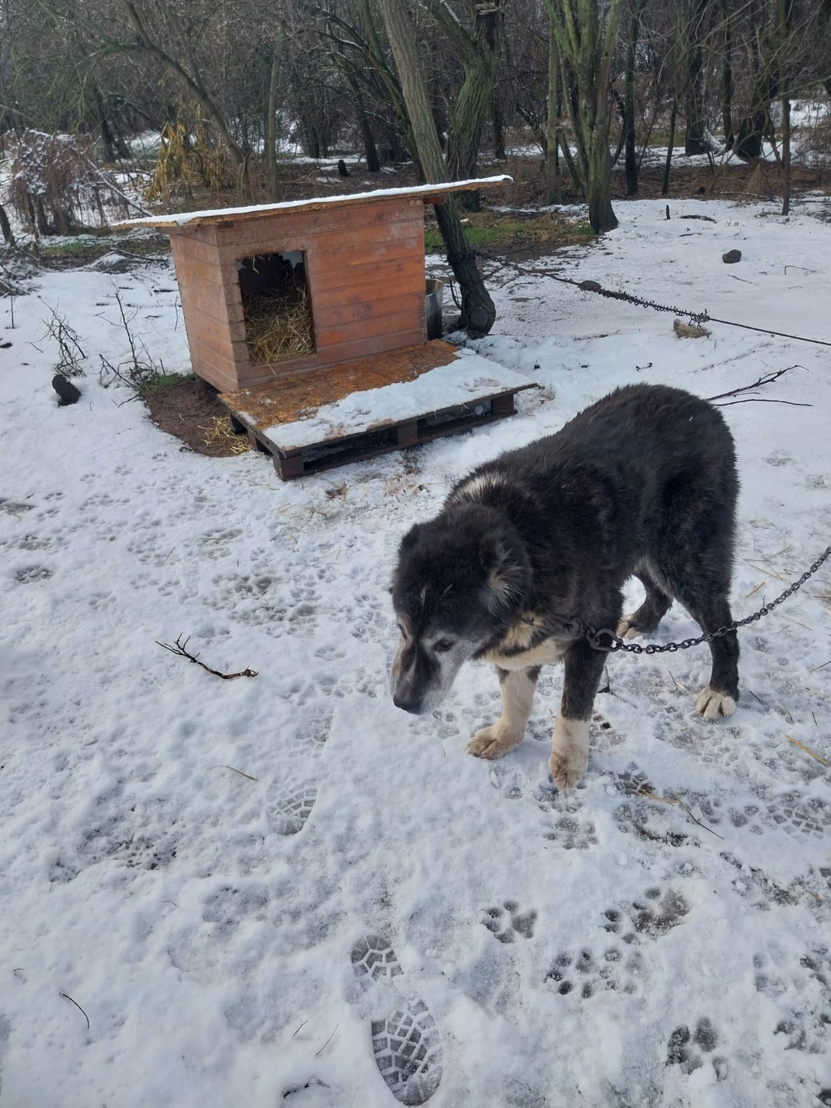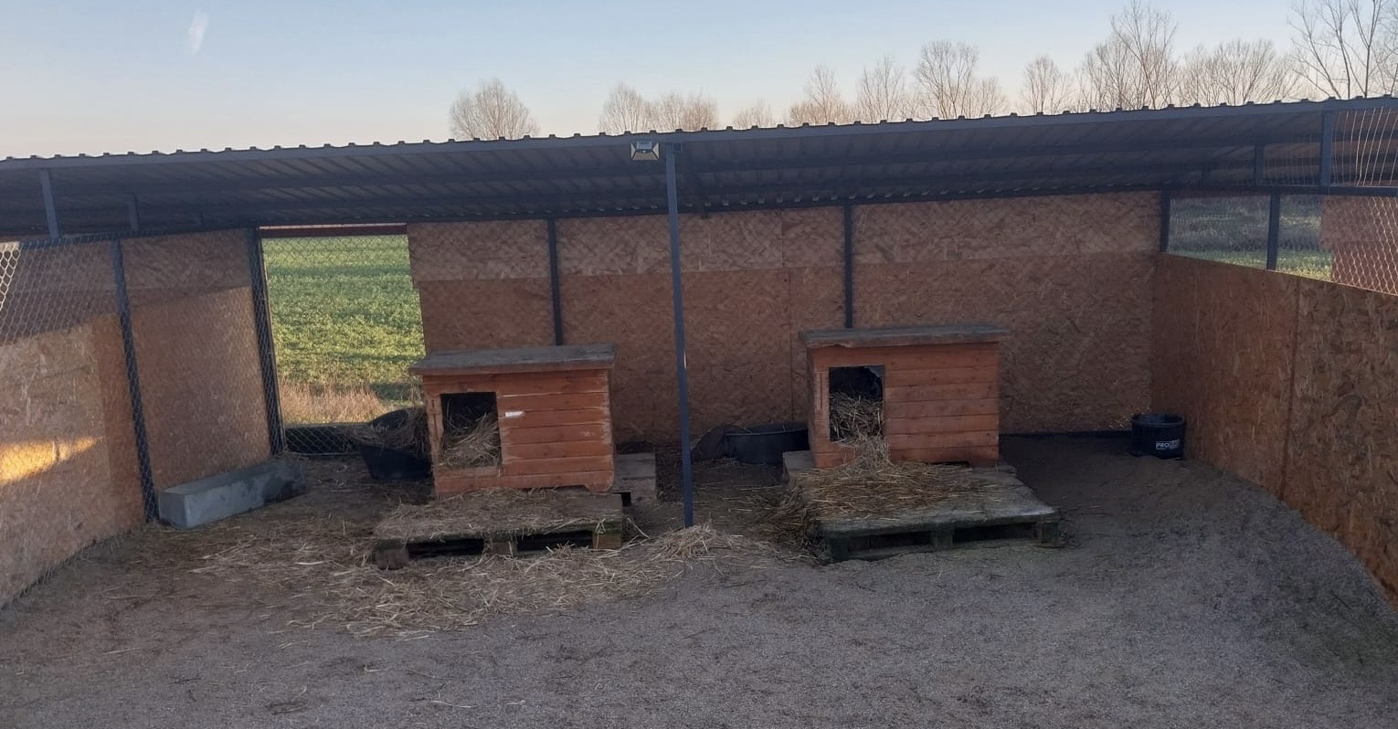 Nachtrag, die Hunde an der Kette gehören nicht uns, sie leben aber sehr dicht am Tierheim und somit versorgen wir sie mit einer guten Hütte, Stroh ect mit.