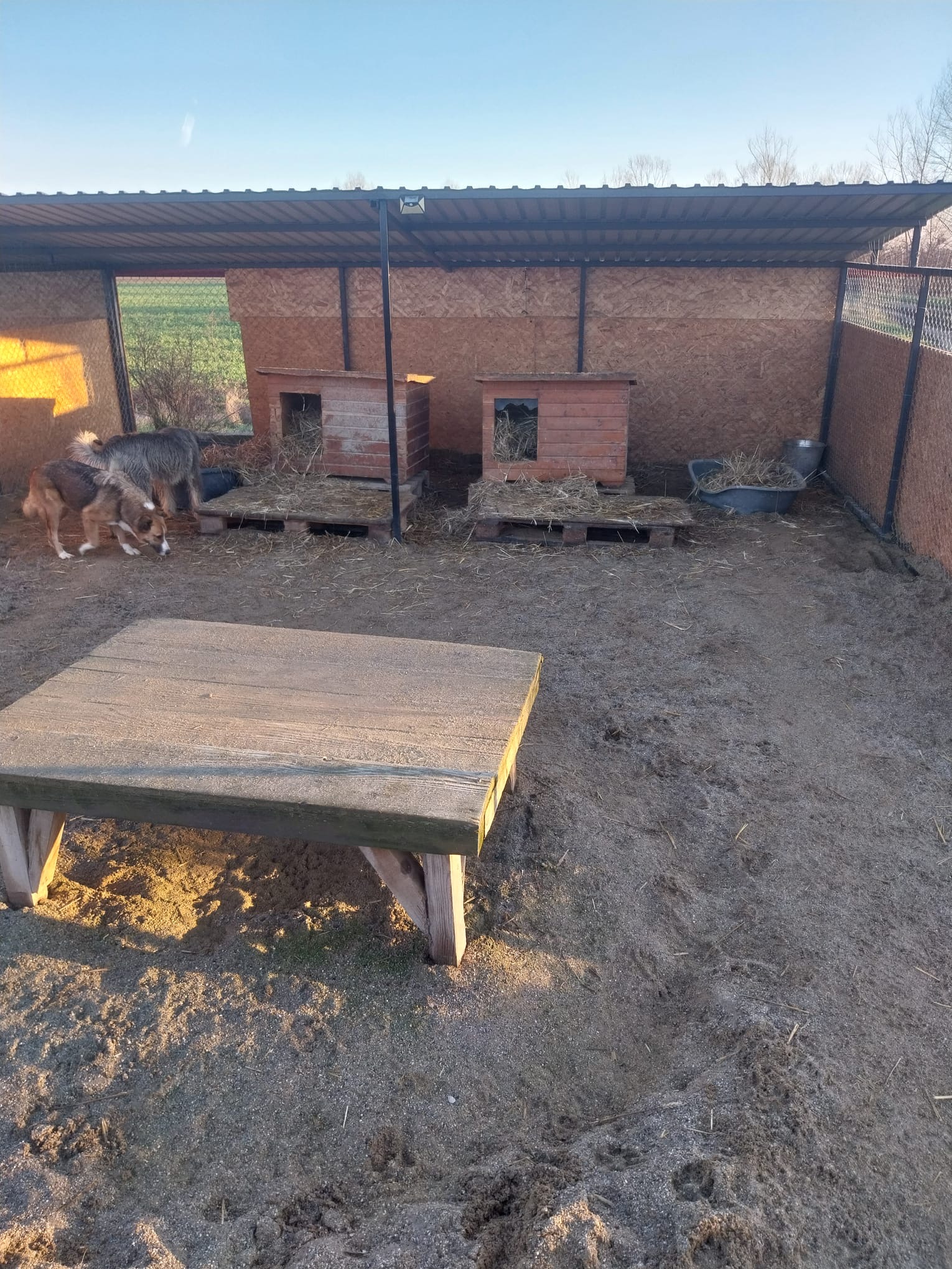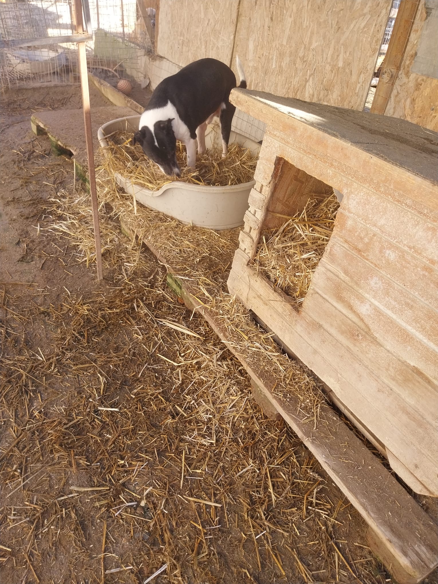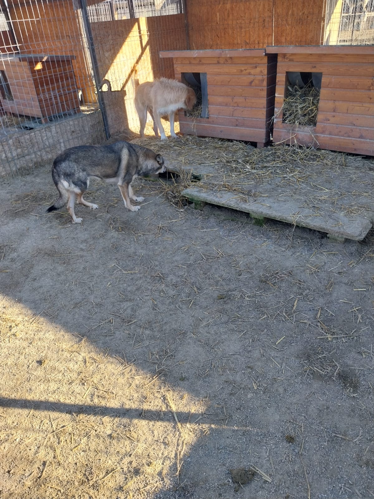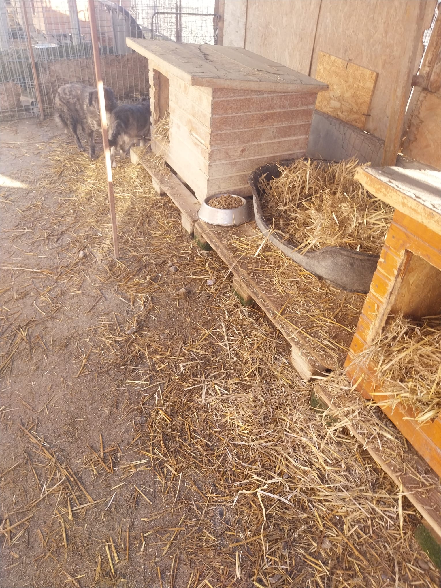 Wann immer es nötg ist, wird Stroh nachgelegt. Es wärmt und bringt auch Abwechslung für die Hunde ??.