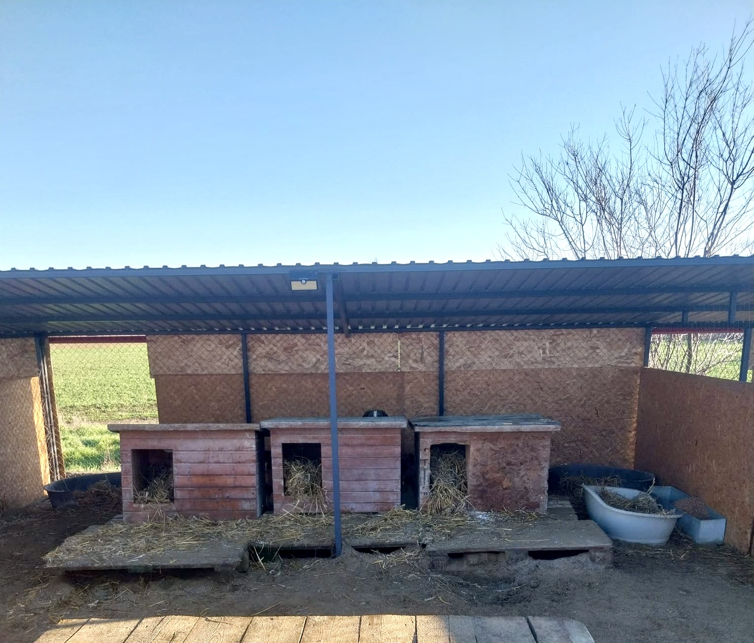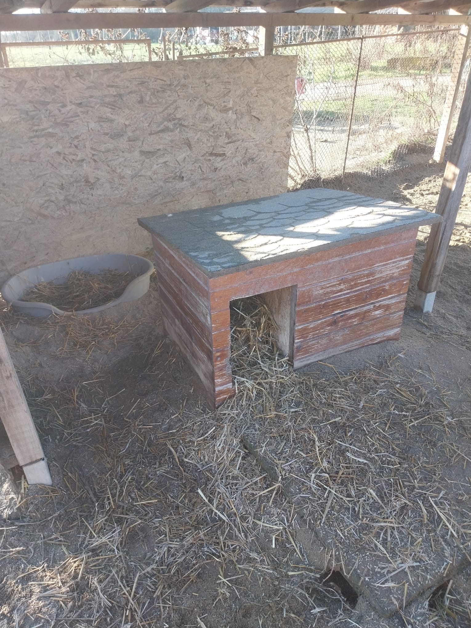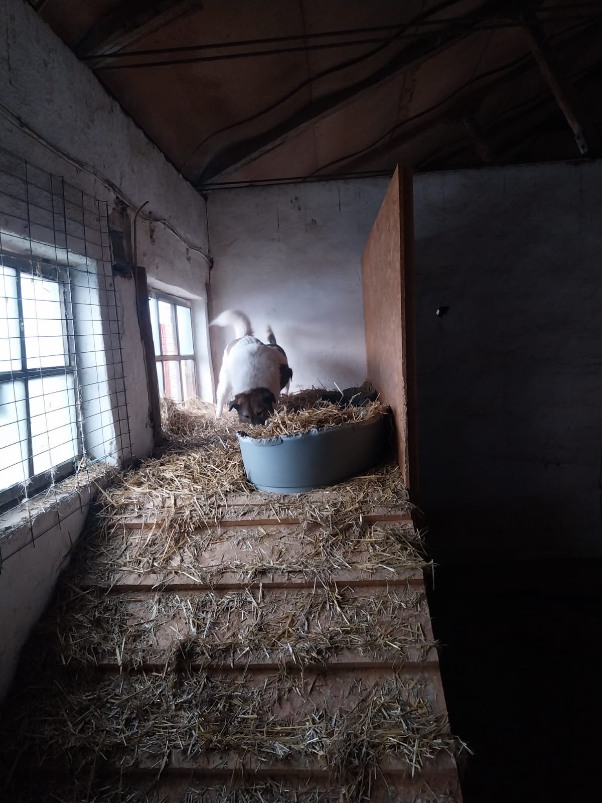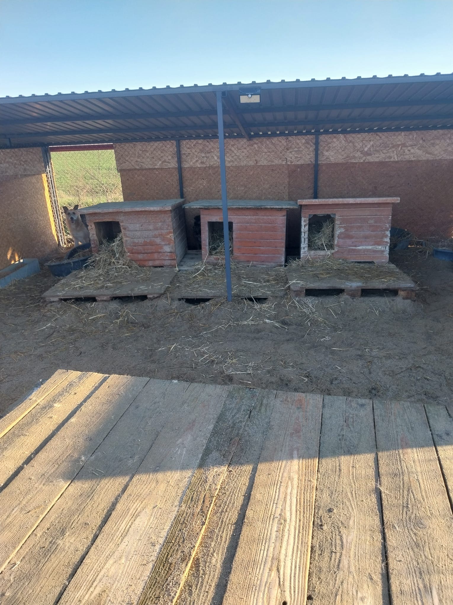 Wann immer es nötg ist, wird Stroh nachgelegt. Es wärmt und bringt auch Abwechslung für die Hunde ??.