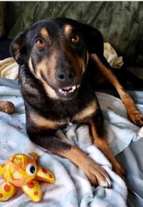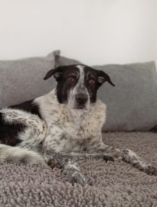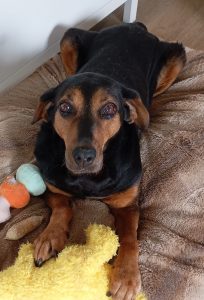 Sally, ca. 11 Jahre hat gesundheitlich einige Baustellen, liebt aber die Leckerlirunde mit Hasenohren mit Fell, Rinderschlund und für ihre Knochen Grünlippmuscheltabletten sehr. Auch liebt sie sehr weiche Spielis 🙂