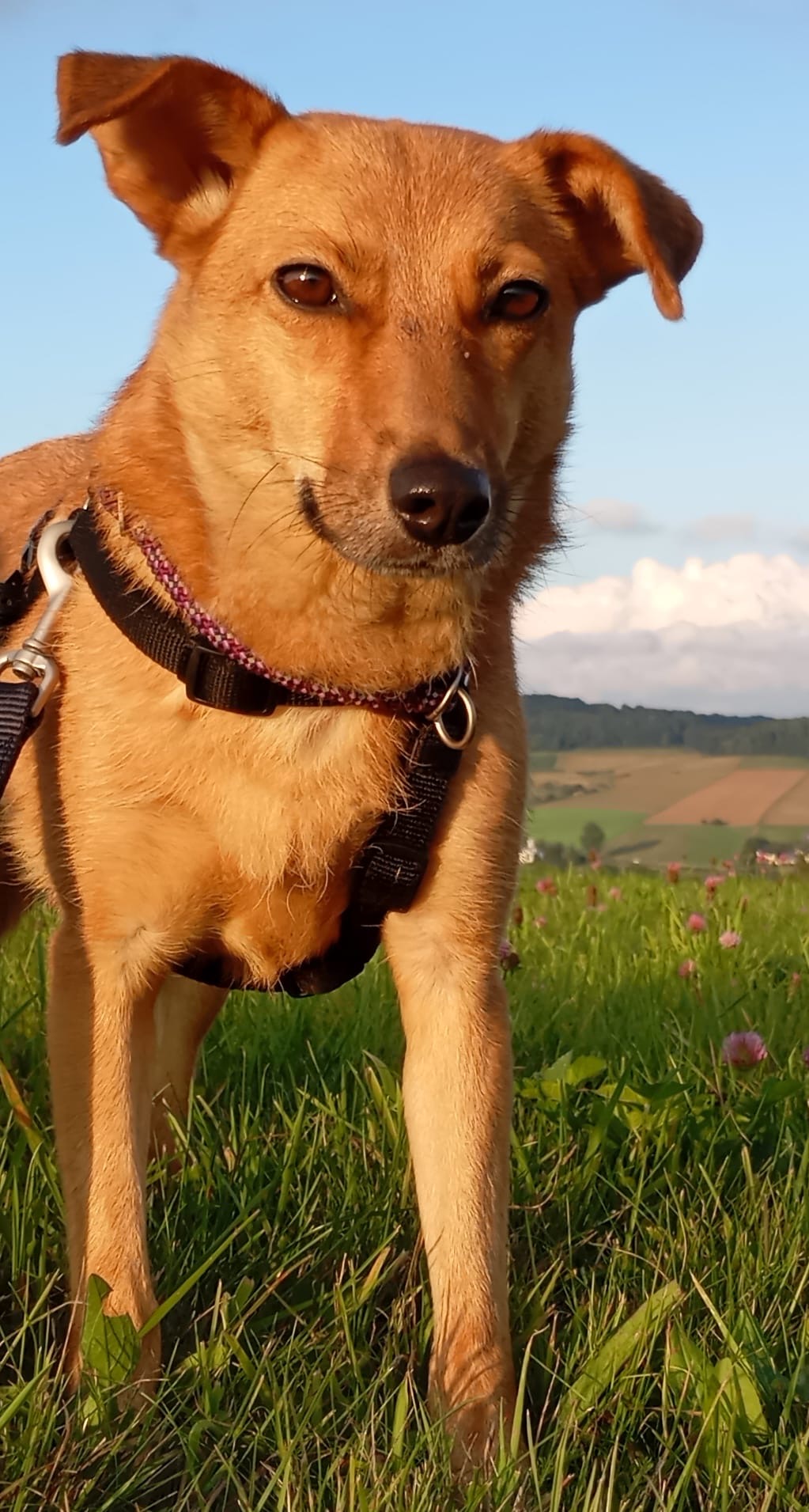 Larry, erst 2,5 Jahre bringt viel Schwung mit und freut sich über xxl-Leckerchen, wie z.B. Hähnchenfiletstangen oder Ochsenziemer.