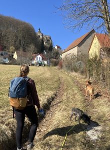 “Liesel kam (zufällig) mitten im ersten Lockdown zu uns. Sie war recht vorsichtig und schüchtern, aber keineswegs besonders ängstlich oder panisch. Sie kannte keine Leine und auch das Geschirr war ihr nicht geheuer. Vorsichtshalber ging sie keinen Schritt 😁. So erkundeten wir in sehr kleinen Schritten die nähere Umgebung und gingen immer wieder die selben Wege. Mit Geduld ging es dann doch immer besser, auch mit der Stubenreinheit.