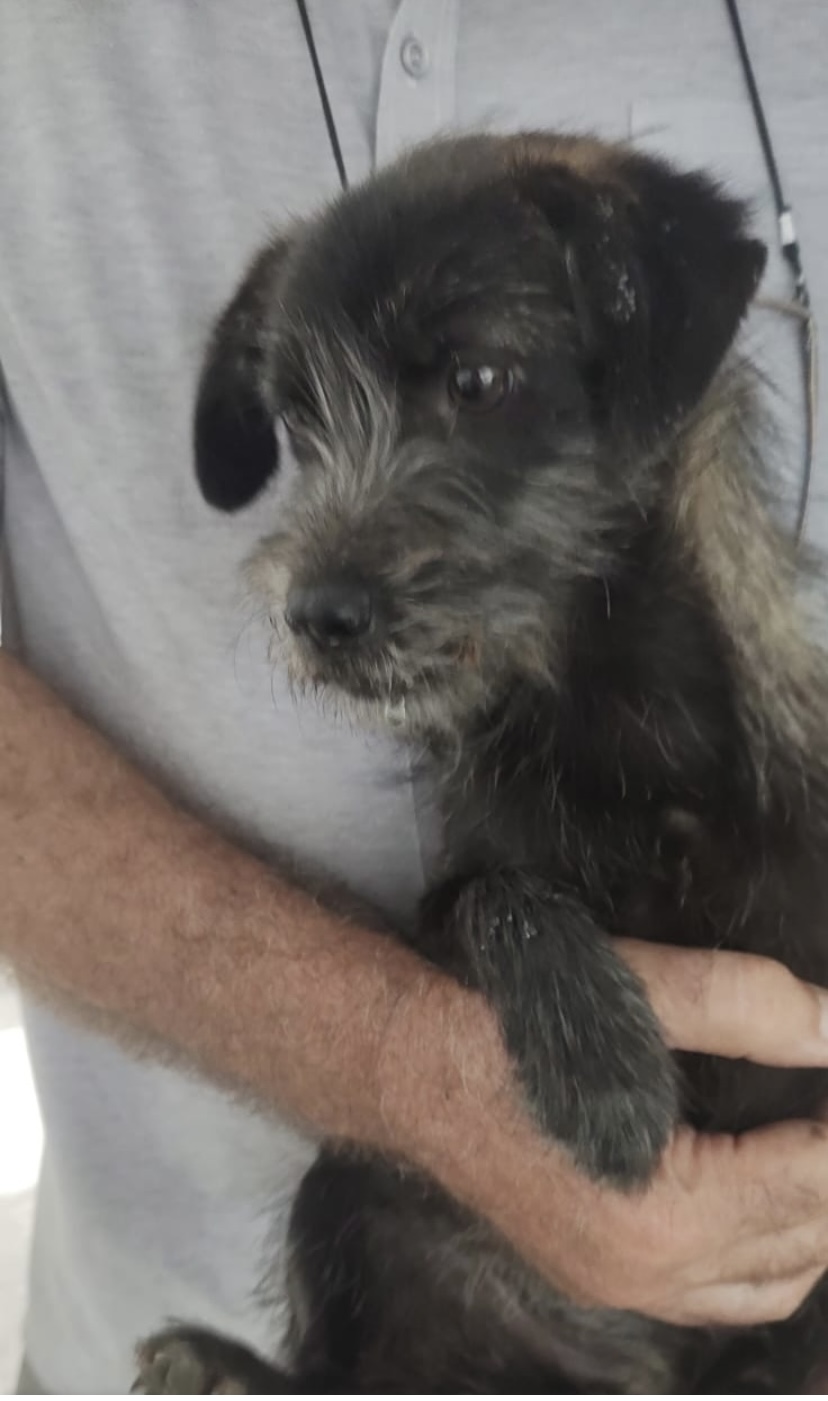 Im Februar 2021 kam ein kleiner Hund namens Dino zu uns. Er war sehr scheu gegenüber Menschen und anderen Hunden, sein Blick verriet, dass er keine leichte Vergangenheit hatte.