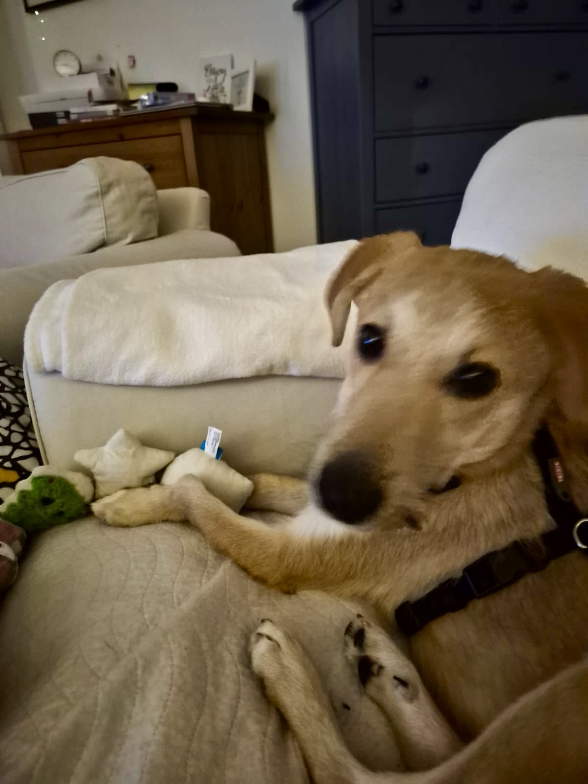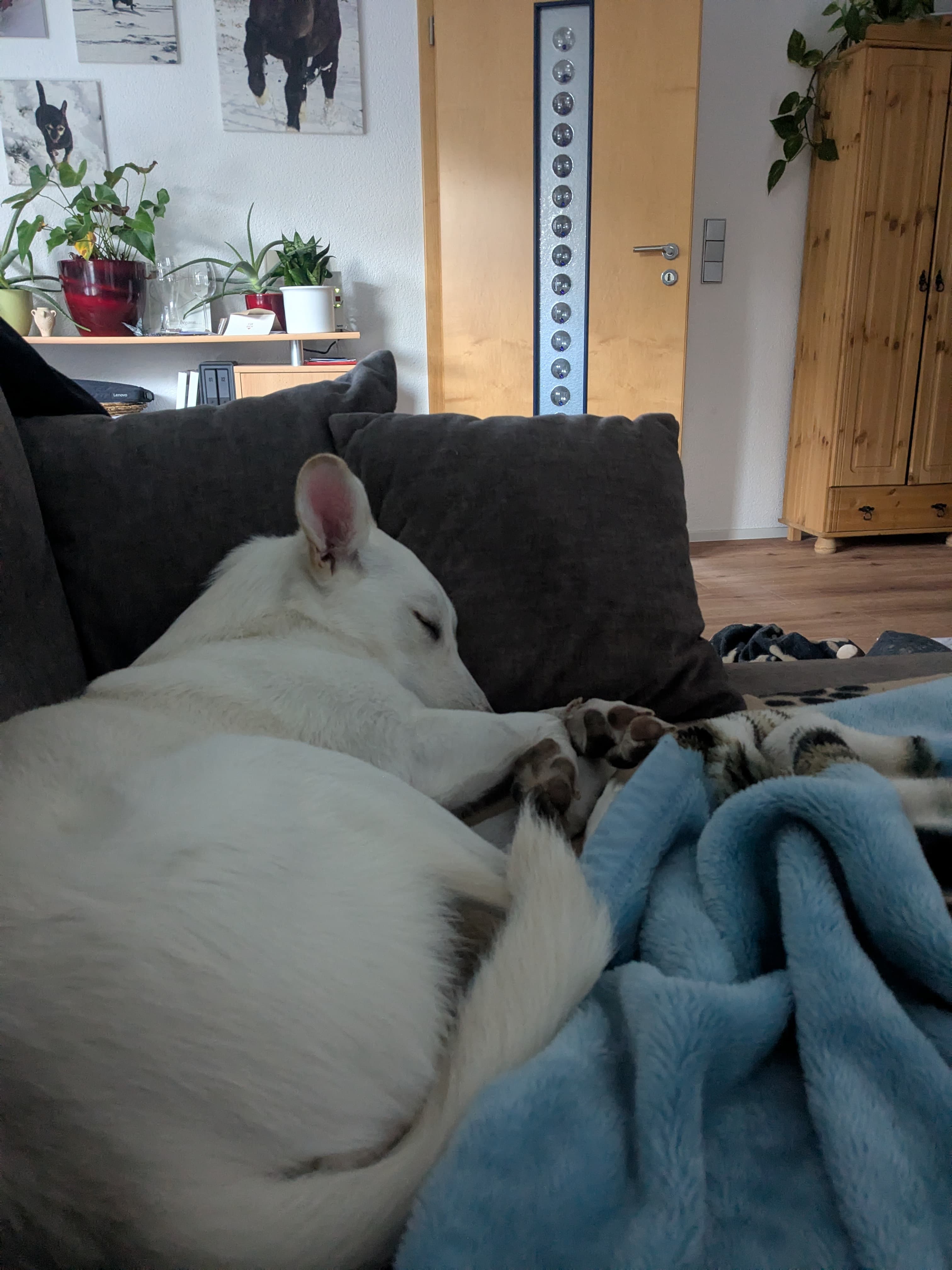 Nachdem Merlin seine beiden hündischen Mitbewohnerinnen zu aller Erstaunen auch verzaubert hat, haben wir als Pflegestelle beschlossen, dass er nicht noch einen Umzug mitmachen muss.